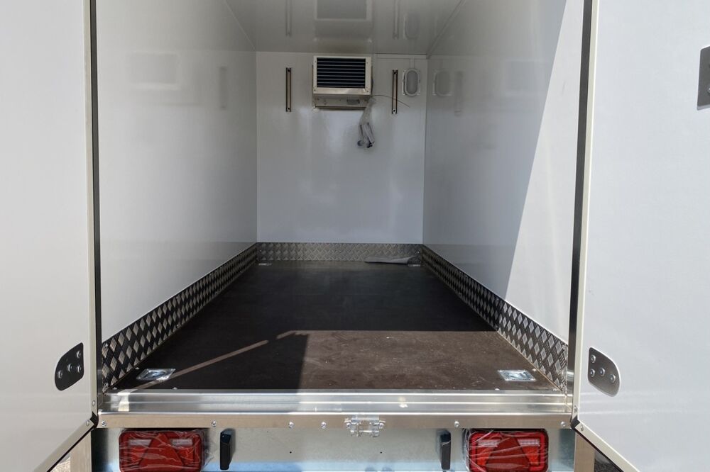 De trailer is uitgerust met een koelmotor om de juiste temperatuur in de laadruimte te handhaven. Het is de perfecte oplossing voor restaurants, cateringbedrijven en organisatoren van tentoonstellingen, beurzen, festivals en evenementen. Voedingsmiddelen en andere goederen kunnen op de juiste manier worden opgeslagen en worden vervoerd in optimale omstandigheden. Dankzij de afmetingen kunnen pallets worden vervoerd en dankzij een groot aantal bevestigingspunten voor spanbanden en riemen kunnen goederen veilig worden vervoerd en wordt voorkomen dat ze tijdens het transport verschuiven.