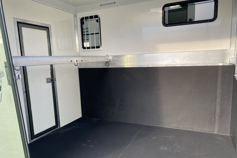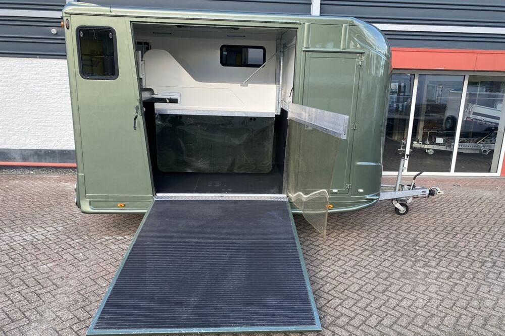 Jong gebruikte en zeer nette ruime 2-paards trailer met zijlader en ruime zadelkamer / kleedruimte aan voorzijde.