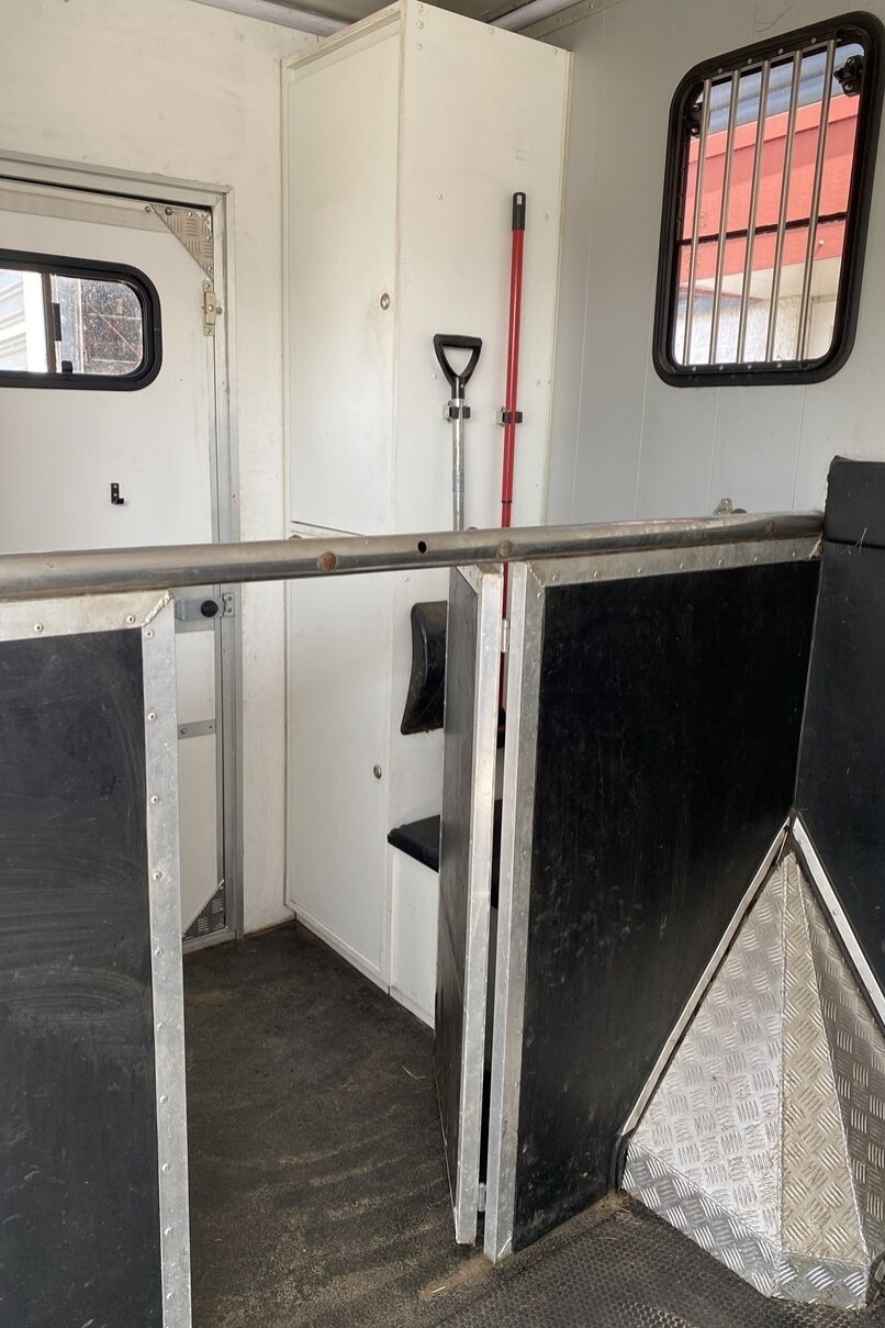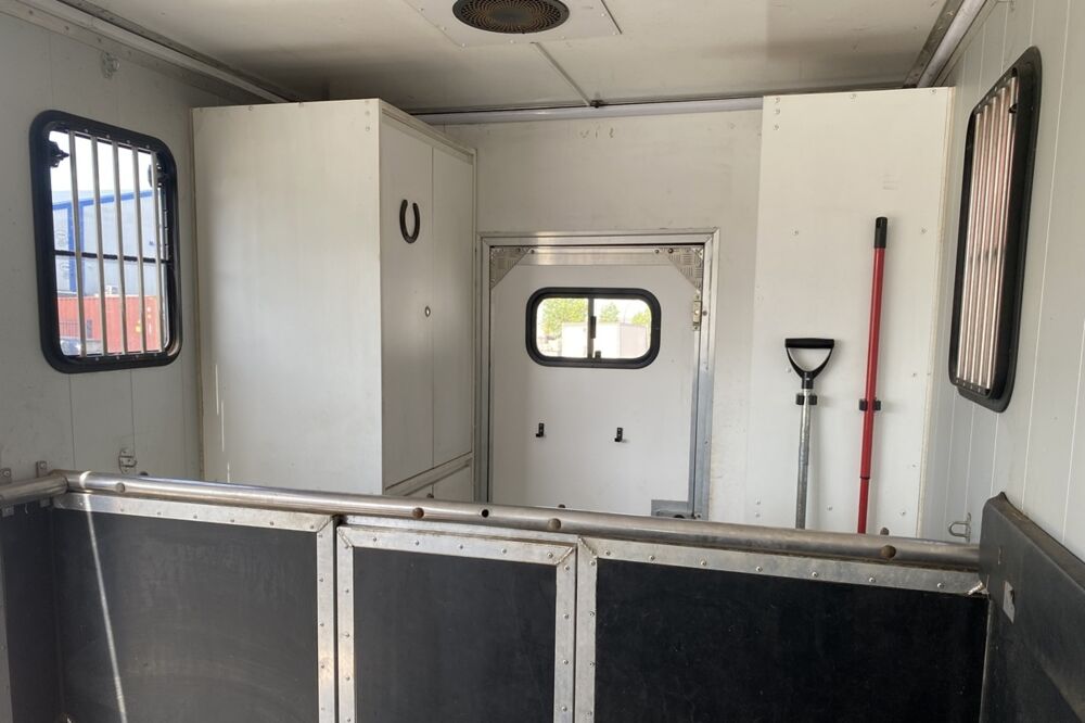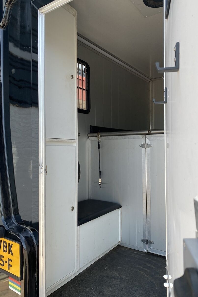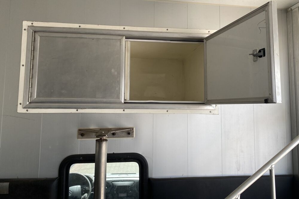 - Schuifraam met tralies tussen cabine en paardengedeelte